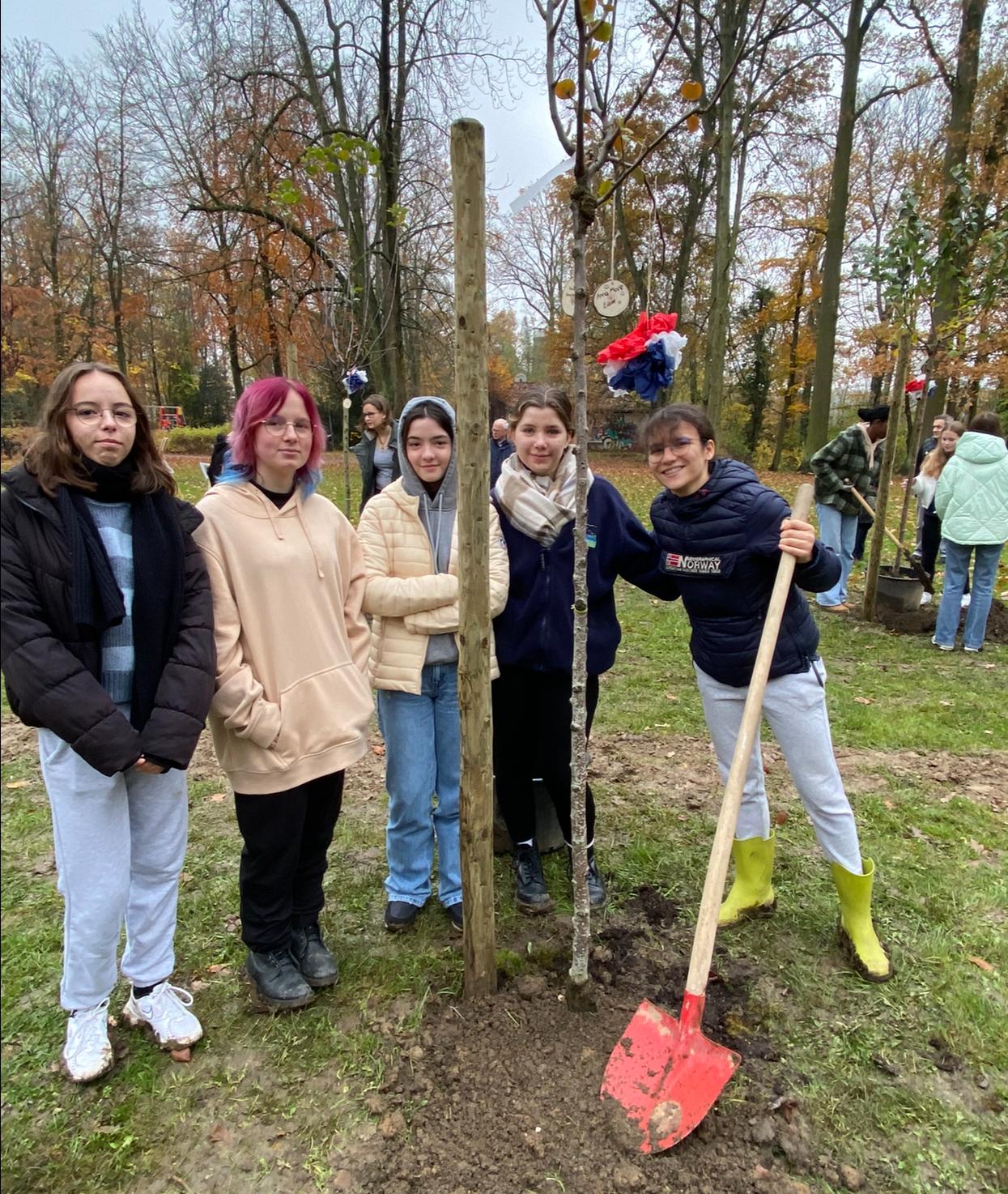 Schülerbegegnung mit der Groupe Scolaire Sainte Anne aus Verdun trägt Früchte. Ende November 2022 nahmen zahlreiche Schülerinnen und Schüler des SGR aus mehreren Französischkursen an einer Schülerbegegnung mit französischen Jugendlichen aus Verdun teil. Liebevoll und aufmerksam hatten die deutschen Jugendlichen die aus Frankreich anreisende Gruppe mit heißem Kakao und Plätzchen in einem gemütlich dekorierten Klassenzimmer empfangen. Hier war erst einmal Zeit für die erste Vorstellungsrunde und die Möglichkeit sich zu beschnuppern. Im Anschluss war von unseren Schülern der Oberstufe eine Stadtführung auf Französisch vorbereitet worden, bei der die Gäste unsere weihnachtlich beleuchtete Innenstadt bestaunen konnten. Dabei bekamen sie Hintergründe über den Hexenturm, die Flut des letzten Jahres, den Römerkanal und die Stadtmauer, das Kriegsdenkmal und die Stolpersteine erklärt. Die Augen der Jugendlichen der Groupe Scolaire Sainte Anne leuchteten vor Stolz, als sie in der Innenstadt den zuvor eigens für sie geschmückten Weihnachtsbaum der Partnerschaft des Friedens Rheinbach/Douaumont-Vaux entdeckt hatten. Zurück in der Schule bastelten die Schülerinnen und Schüler noch Dekoration für die Bäume des Friedens, die sie am nachfolgenden Tag im Stadtpark pflanzen würden. Auf kleine Holzscheiben gravierten sie ihr Vornamen und bastelten aus Servietten Pompons in den französischen Nationalfarben. Am Folgetag trafen sich die ca. 60 Jugendlichen im Stadtpark vor dem Kriegsdenkmal, wo sie bereits von Rheinbachs Bürgermeister Ludger Banken, dem Vorsitzenden der Partnerschaft des Friedens, Stefan Raetz, dem Bürgermeister von Douaumont-Vaux, Armand Falque, und dem Direktor des Beinhauses, Olivier Gérard, empfangen wurden. In kurzen Reden betonten diese alle gleichermaßen die Bedeutung der deutsch-französischen Freundschaft für den europäischen Frieden und die Tatsache, dass die jungen Generationen beider Länder zukünftig angesichts des Ukrainekriegs und der Klimakrise Hand in Hand an ihrer Zukunft arbeiten müssten. Im Anschluss wurden etwa 20 Obstbäume gepflanzt, die in einer kleinen Friedensallee erblühen mögen. Bei heißer Suppe und Kakao nach der getanen Arbeit tauschten einige der Jugendlichen noch ihre Kontaktdaten aus und verabredeten sich zu einem weiteren baldigen Austausch, vielleicht sogar für drei Monate mit dem Brigitte-Sauzay-Programm. Die Lehrkräfte freuten sich sehr über diese Begegnung, die verbunden mit einer hohem Symbolkraft genau das erreicht hatte, was bezweckt worden war: Völkerverständigung, Frieden und Freundschaft.