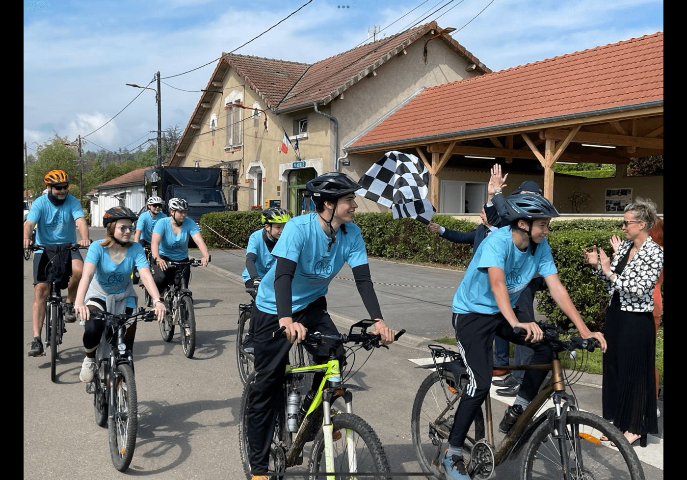 Das Pfingstwochenende nutzen Schülerinnen und Schüler sowie Lehrkräfte und Eltern meist zur wohlverdienten Atempause und Erholung vor dem anstrengenden Schuljahresendspurt. Doch zwölf tapfere Friedensanhänger der Jahrgangsstufen 7-10 traten genau an diesem Wochenende eine große sportliche Herausforderung an: Die Partnerschaft des Friedens Rheinbach/Douaumont-Vaux e.V. hatte, angestoßen von dem Athleten und Journalisten Marcus Bierlein, dem Fachbereichsleiter für Tourismus und Stadtmarketing der Stadt Rheinbach Thomas Spitz, und den beiden Vorsitzenden des Vereins Stefan Raetz und Stephanie Ewald, zu einer Fahrradtour für den Frieden aufgerufen. Diese Tour sollte sich über 270 KM erstrecken und Anstiege von 2745 Höhenmetern beinhalten. Begleitet wurde die Tour von einigen sehr engagierten Eltern, die unkompliziert und begeistert da anpackten, wo Hilfe nötig war. Mit über 20 Teilnehmenden und Familienangehörigen erreichte die Gruppe am 20.5. 2024 den Ort Douaumont in Frankreich pünktlich zur Einweihung der neu erbauten deutsch-französischen Begegnungsstätte. Die Bürgermeister von Rheinbach, Ludger Banken, und Douaumont-Vaux, Armand Falque, beglückwünschten die Gruppe und unterstrichen die gemeinsamen Werte und den europäischen Geist beider Länder. Die Gruppe wuchs ungeachtet der unterschiedlichen Altersgruppen schnell zu einer wirklichen Mannschaft zusammen, deren Mitglieder Seite an Seite standen, sich gegenseitig anfeuerten und unterstützten. Zwar war das Pfingstwochenende somit weniger erholsam, aber alle waren sich einig, dass die Anstrengung sich gelohnt hat. „Es gilt alles zu tun für den Frieden und die Völkerverständigung!“, zog Annika (Kl 7c) bei einem Interview ihr Fazit.